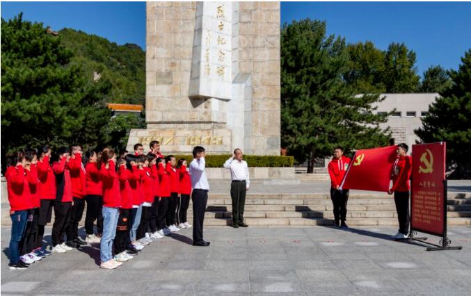 在高大堅挺、莊嚴(yán)肅穆的紀(jì)念碑前,剛剛轉(zhuǎn)為正式黨員的才永輝同志在黨支部書記張凱同志的帶領(lǐng)下,進行了莊嚴(yán)的宣誓儀式,鮮艷的黨旗迎風(fēng)招展,堅定的神情、鏗鏘的誓言立下對黨忠誠,展現(xiàn)黨員奮進的決心。宣誓儀式后,靈蘭團隊耿慶環(huán)同志在現(xiàn)場向藏象黨支部遞交了入黨申請書。