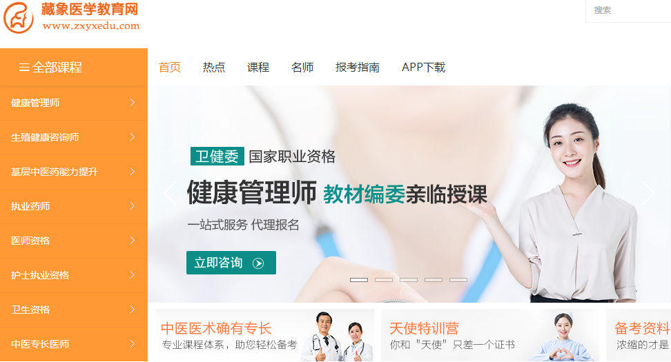 藏象醫(yī)學(xué)教育網(wǎng),為藏象集團(tuán)旗下的一家醫(yī)學(xué)考試培訓(xùn)網(wǎng)站。其依托教學(xué)研發(fā)和集團(tuán)在線技術(shù)及其豐富的培訓(xùn)經(jīng)驗(yàn)和大量培訓(xùn)基地,以題庫(kù)、直播、錄播課、移動(dòng)學(xué)習(xí)平臺(tái)、圖書(shū)和面授課程等為載體,從廣大考生和醫(yī)療行業(yè)人群的實(shí)際需求出發(fā),提供針對(duì)性輔導(dǎo)內(nèi)容,以及考試命中率高和實(shí)操性更強(qiáng)的培訓(xùn)課程。目前擁有醫(yī)師資格、執(zhí)業(yè)藥師、衛(wèi)生資格、護(hù)士資格、職業(yè)資格、學(xué)歷教育等26大類、近千門網(wǎng)上輔導(dǎo)課程。