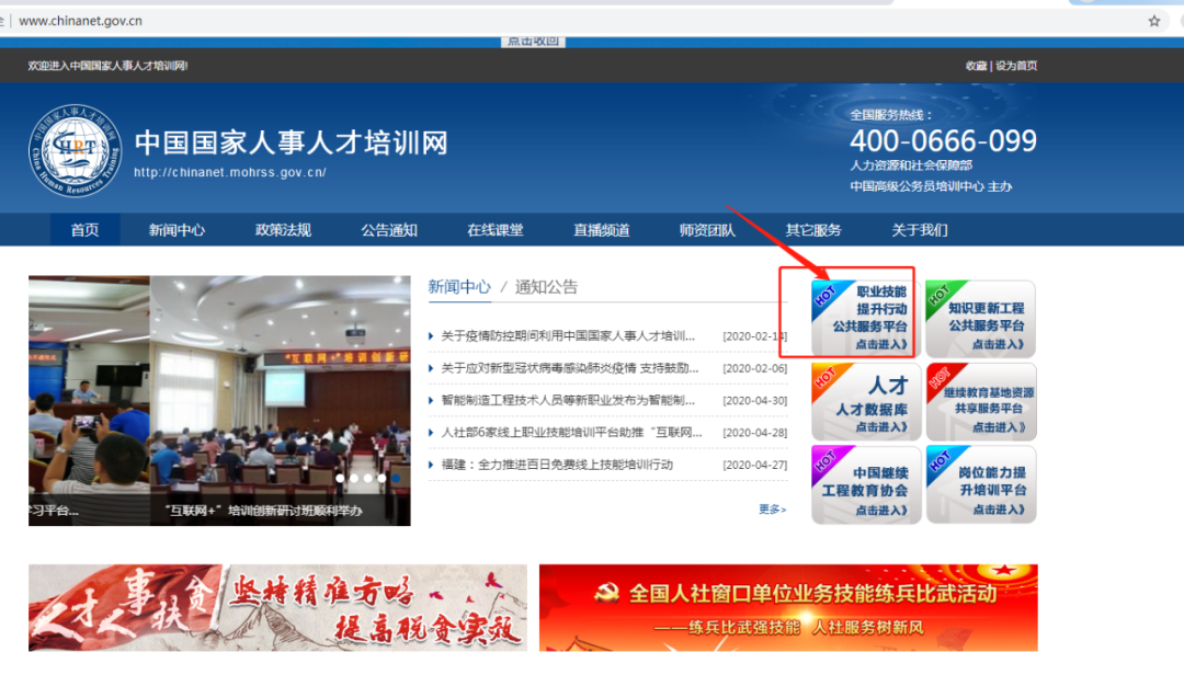 第二步:點(diǎn)擊右上方“職業(yè)技能提升行動(dòng)公共服務(wù)平臺(tái)”進(jìn)入免費(fèi)學(xué)習(xí)平臺(tái)↓↓↓