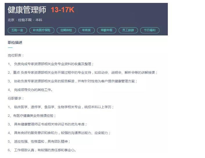 我國十三五之后提出“大健康”建設(shè),把提高全民健康管理水平放在國家戰(zhàn)略高度,并且2020年6月1日,《中華人民共和國基本醫(yī)療衛(wèi)生與健康促進法》也將正式施行。在將來,大健康產(chǎn)業(yè)發(fā)展?jié)摿薮?,健康管理師職業(yè)技能需求也將迎來井噴式增長。當你還在猶豫要不要報名健康管理師,擔心未來發(fā)展時,許多人已經(jīng)在默默趕超你,搶占國家政策最佳風口!