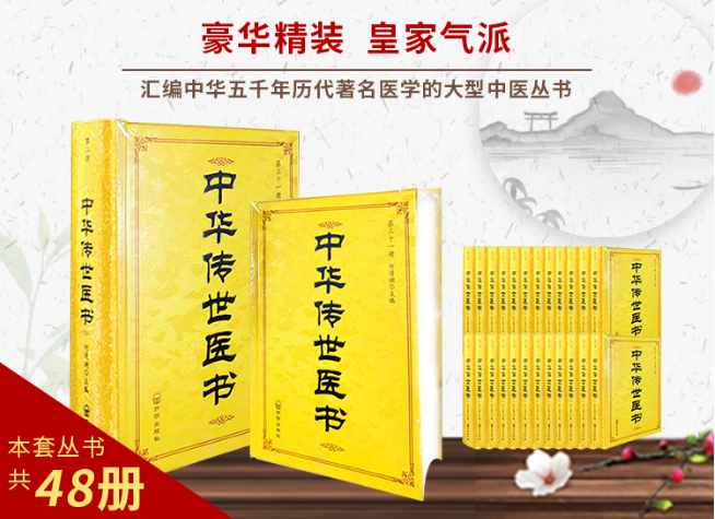 《中華傳世醫(yī)書》由開明出版社出版,本套叢書共分48冊,每冊950余頁共46000余頁,2850印張,豪華精裝,皇家氣派,定價:28988元/套。全書可擺放辦公室或者家里直接當做書架使用,也是收藏贈送的最佳禮品,尤其適合各類各級圖書館資料室,各類中醫(yī)院綜合醫(yī)院圖書館資料室收藏,中醫(yī)專業(yè)人士和愛好者閱讀收藏使用,各類中醫(yī)藥產(chǎn)業(yè)相關(guān)人士,各類中醫(yī)行政管理領(lǐng)導(dǎo)辦公室,各類國學(xué)愛好者,各類海外華人和熱愛中華文化的收藏者閱讀者等等。