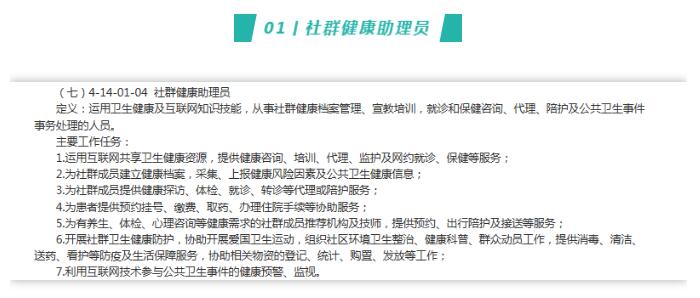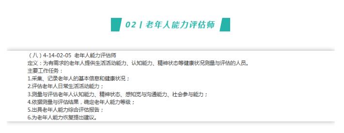 在人社部聯(lián)合國家市場監(jiān)管總局、國家統(tǒng)計(jì)局發(fā)布9個新職業(yè)中,社群健康助理員、老年人能力評估師尤其引人關(guān)注。從崗位描述和工作內(nèi)容上來看,兩者對口專業(yè)皆指向健康管理師。