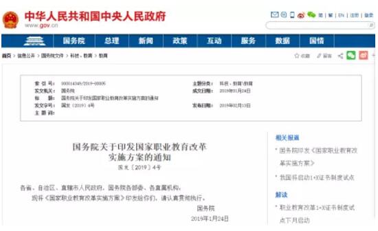 國(guó)務(wù)院印發(fā)《國(guó)家職業(yè)教育改革實(shí)施方案》,引起社會(huì)各界高度關(guān)注。國(guó)家把職業(yè)教育擺在經(jīng)濟(jì)社會(huì)發(fā)展全局進(jìn)行謀劃,著眼推動(dòng)形成各部門之間、中央與地方之間協(xié)同發(fā)展職業(yè)教育的工作合力,責(zé)任落實(shí)既重視部門作用發(fā)揮,也突出地方統(tǒng)籌推進(jìn),最大限度凝聚各方共識(shí)。