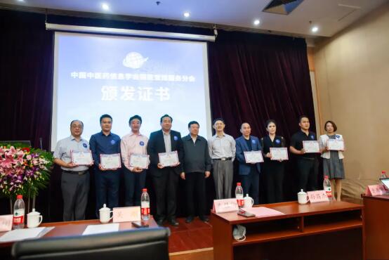 中國中醫(yī)藥信息學會吳剛會長,朱佳卿秘書長分別為分會會長楊晉翔,副會長孫昌杰、于天源、劉廣超、朱方敏、潘麗萍,秘書長趙亞明,副秘書長劉豐等人頒發(fā)證書,并拍照合影留念。